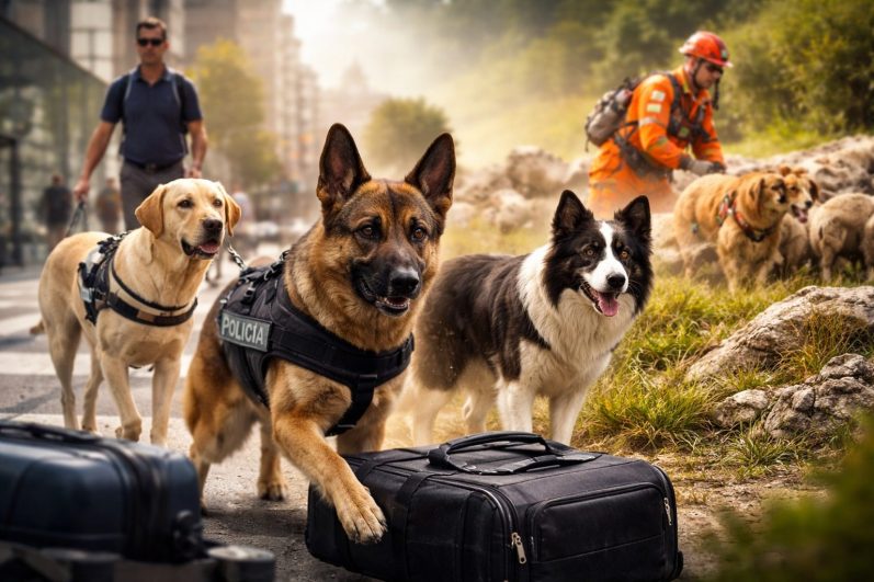 En el ámbito policial, el perro se convierte en un “sensor” y en un recurso táctico. La Policía Nacional enumera especialidades como detección de explosivos y drogas, rescate y salvamento, detección de acelerantes del fuego, búsqueda de restos humanos, localización de personas ocultas o armas de fuego, entre otras.